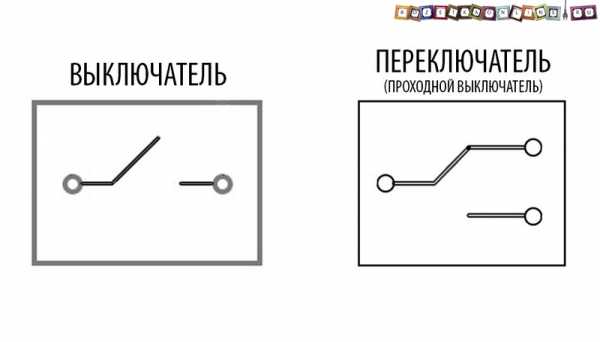 Ниже, для наглядности, представлены схематически выключатель и переключатель вместе, и вы можете увидеть их различия.