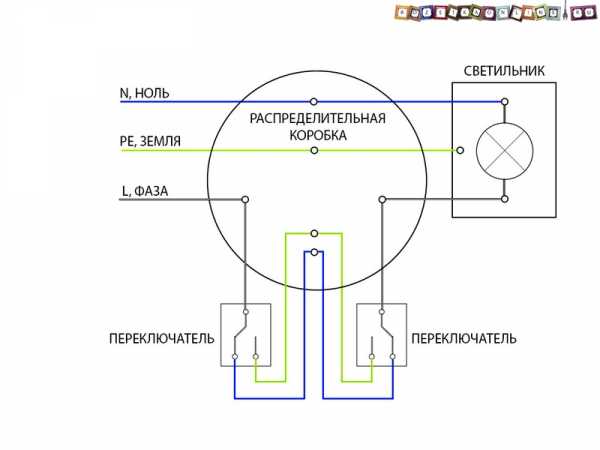 Более того, для удобства самостоятельного подключения двух переключателей к одной лампе, я рекомендую пользоваться ЭТИМ материалом, в котором пошагово, наглядно показан процесс подключения и установки проходных выключателей.