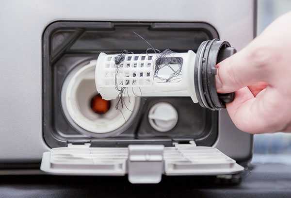 Фильтр можно почистить самостоятельно. Такой шаг должен быть первым, чем мысль о вызове мастера. Посмотрите инструкции, выясните месторасположение фильтра (в разных машинах он находится в неодинаковых местах), хотя в общем – нужно открыть низ передней панели.