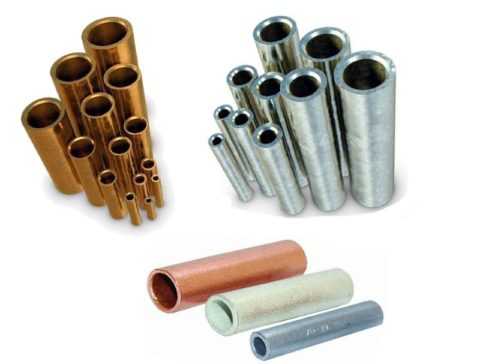 - Для прессовки используются специальные гильзы. Эти гильзы могут быть алюминиевыми, медными или латунными. Первые, соответственно, используются для алюминиевых проводов, вторые для медных, а третьи — для соединения и медных, и алюминиевых проводов.