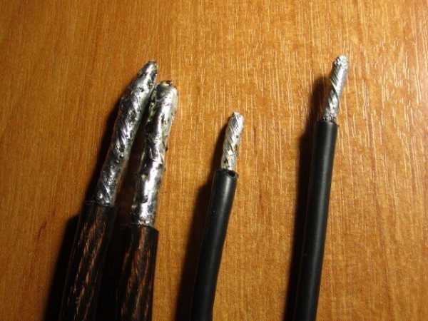 - Зачистить острым ножом концы проводников от изоляции и выровнять их по длине.