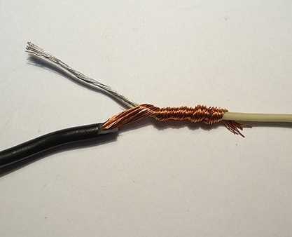 Убедиться визуально в прочности выполненной обмотки. При помощи простой или традиционной скрутки осуществляется электрическое подсоединение дополнительных проводников на основную, ведущую линию электропроводки.