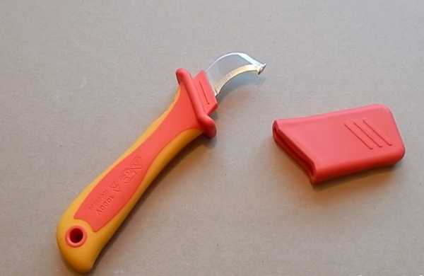 Но если данный процесс имеет небольшие масштабы, то не стоит тратиться на дорогостоящие инструменты. В этом случае способен справиться даже кухонный нож. Однако применяя его для производства данного вида работ можно порезаться, испортить кабель, а также есть риск поражения электрическим током. Поэтому и было придумано более удобное приспособление – нож с пяткой для снятия изоляции.