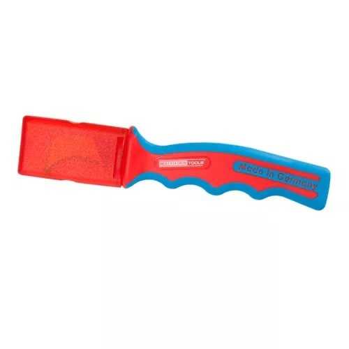 - Knipex KN 9855 – дорогая модель ножа. При эксплуатации он почти ничем не отличается от других экземпляров, но визуально сразу можно понять, что это брендовый инструмент. Стилистика и оформление его очень отличается. Этот товар завоевал свою популярность благодаря отличному качеству. Главная деталь – пятка приварена ровно и надежно, поэтому использовать нож можно долгое время. В случае если все таки обнаружится брак, такой инструмент очень легко поменять, так как производители борются за качество. Со временем такой нож может затупиться – это является единственным минусом изделия.