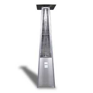 Более современные модели выпускаются в форме пирамидки. Такие обогреватели подают тепло к объекту не сверху, а равномерно вокруг себя. Создаётся тепловой столб, по величине зависящий от размера стеклянной колбы, изготовленной из закалённого стекла, выдерживающего высокую температуру. Нагревательный элемент ограждён защитной решёткой.