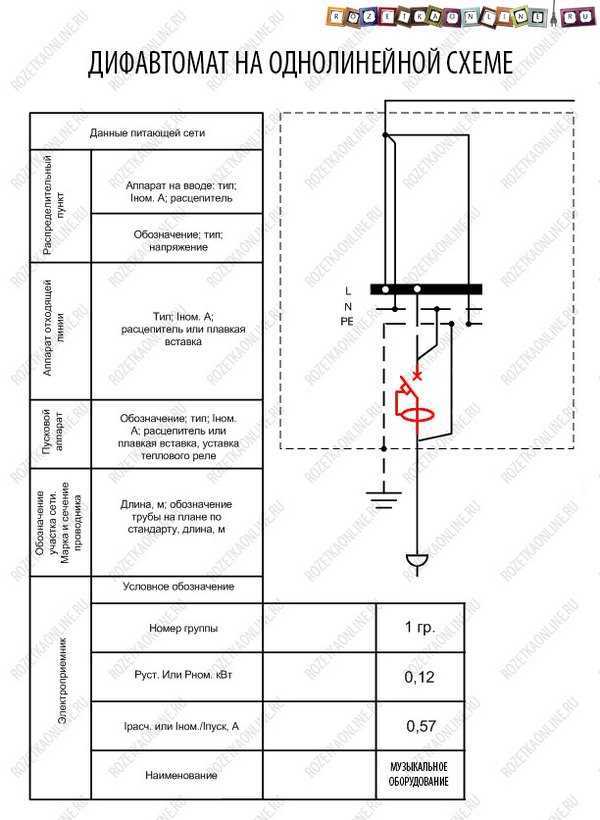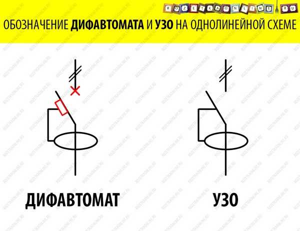 Согласно нему, дифавтомат на однолинейной схеме показывается следующим образом: