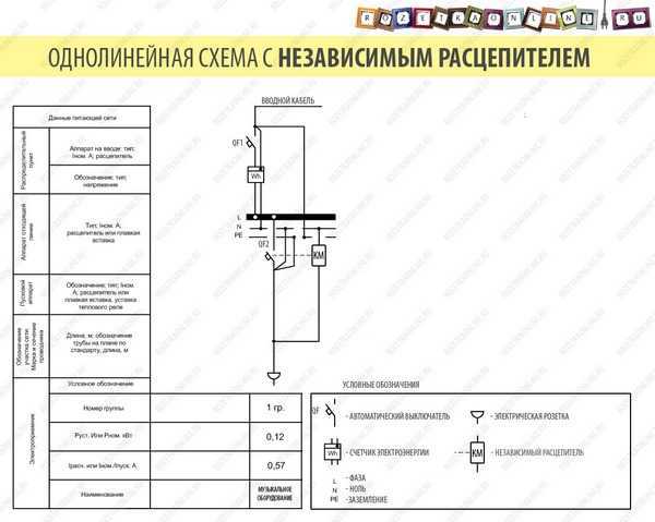 Условное обозначение независимого расцепителя на однолинейных схемах довольно простое, сформировано согласно правилам действующего ГОСТ Р МЭК 60617-DB-12M-2015 «Графические символы для схем (в формате базы данных)».