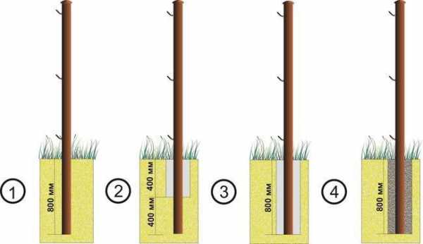 Дно лунок трамбуют, подсыпая на низ слой щебня. После погружения столбов внутрь выемок: