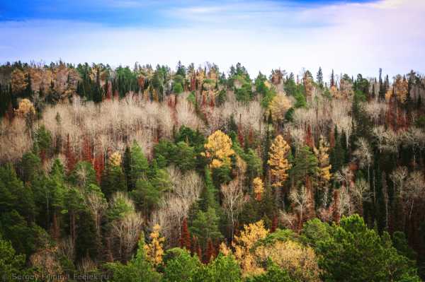 Осень в этом году выдалась, в основном, холодной и дождливой. И в один из немногочисленных относительно солнечных дней, правда уже в то время, когда половина золотых листьев успела опасть, мне вновь довелось побывать в дальней части заповедника Столбы. Еще в сентябре появилась идея пройти заповедник через Дикие Столбы и выйти не по основной дороге, а в район Базаихи. В прошлый раз найти тропу не удалось, решили попытаться еще разок все-таки освоить этот маршрут.