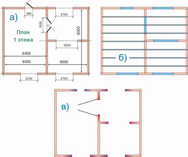 Рисунок 246.1 а) примерный план первого этажа б) план перемычек и балок перекрытия