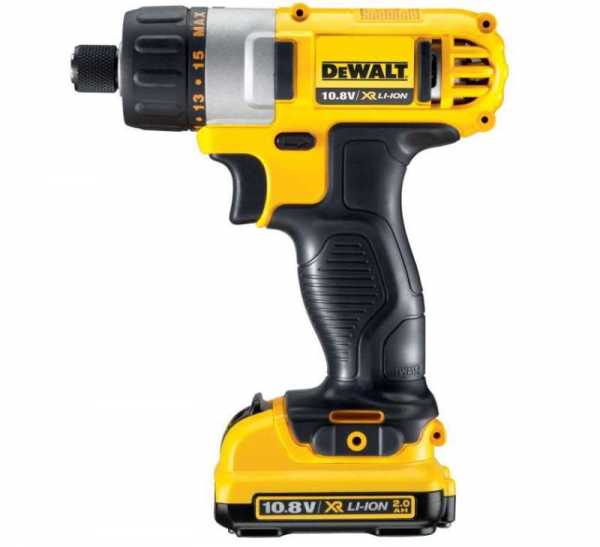| 1 | DeWALT DCD730D2 | Очень мощная безударная дрель-шуруповерт на аккумуляторе 1,5 А/ч, 14,4 В развивает крутящий момент до 57 Н/м. Используются 2 Li-Ion батареи с временем подзарядки 30 минут. Аппарат развивает скорость х/х 1900 об/мин, имеет 2 скорости, реверс, электронное регулирование. Диаметр патрона 1,5-13 мм позволяет использовать биты для сверления до 35 мм по дереву и до 13 по металлу. Есть фиксация шпинделя, блокировка кнопки включения. Вес инструмента 1,5 кг. | 17 440 |