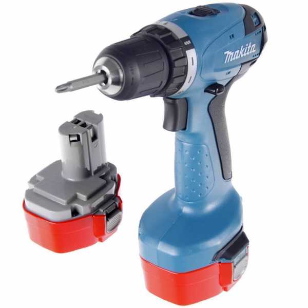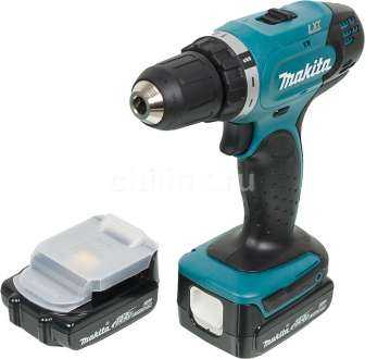| 2 | Makita DF330DWE | Безударная дрель-шуруповерт имеет в комплекте 2 съемных аккумулятора, характеризующихся быстрой подзарядкой (30 мин). Прибор оборудован быстрозажимным патроном 0,8-10 мм. Режим работы двухскоростной, с реверсом. Есть электронное регулирование скорости вращения, фиксация шпинделя. Как дрель, инструмент сверлит отверстия в дереве до 21 мм, в металле до 10мм. Максимальный крутящий момент 24 Н/м, признак недостаточной мощности. Вес аппарата 880 г, удобная ручка способствуют комфортной работе. Инструмент продается в компактном кейсе. | 6 990 |