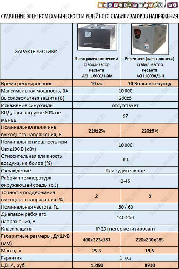 В ней, как вы можете видеть, довольно много совпадений, но есть и существенные различия, давайте рассмотрим их, сразу же по каждому пункту выявим лидера, а в конце статьи подведем общий итог и узнаем какого типа стабилизатор напряжения всё же лучше.