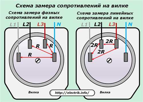Схемы проверки правильности подключения трехфазной вилки к электрическому прибору