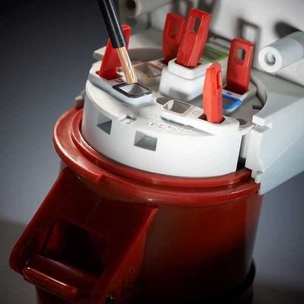 Первый снимок демонстрирует, что изоляция с конца провода при его подготовке не снимается, остается на месте. Она для создания электрического контакта с клеммой розетки будет просто проколота специальным встроенным зажимом.