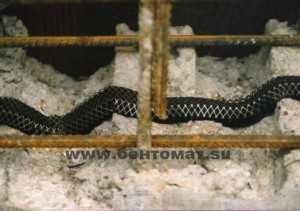 - Гидроизоляционный шнур укладывается на бетонную поверхность плотно, без зазоров и при необходимости фиксируется дюбелями при помощи специальной металлической сетки.