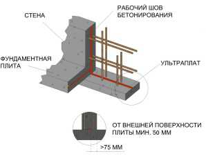 Единственное, что Вам необходимо гидроизолировать, — это места стыков разных элементов бетонной конструкции (например, стык между фундаментной плитой и стенами или стык между ленточным фундаментом и стяжкой пола в подвале) или места стыков отдельных участков одной бетонной конструкции (например, холодные швы, которые образуются в местах перерывов бетонирования фундаментной плиты, стяжки или стен).