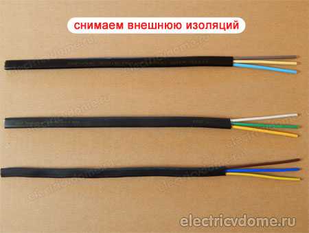 Снимается изоляция в длину сантиметров двадцать-тридцать.