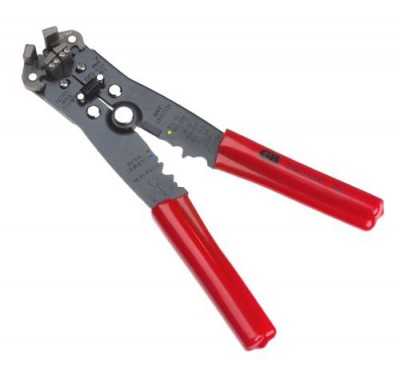 Такой инструмент еще более прост в работе. Его устройство по сравнению с предыдущей моделью усовершенствовано. Не нужно вращать стриппер вокруг кабеля, достаточно закрепить провод в соответствующем гнезде и нажать на ручки. Многие модели стрипперов-полуавтоматов способны опрессовывать наконечники и разрезать кабели.