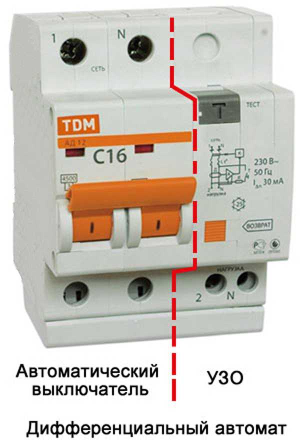 Дифференциальный автомат соединяет в себе функции УЗО и автоматического выключателя