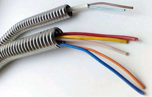 Металлическая гофрированная труба для электропроводки, в основном, применяется при проведении кабеля по легко возгораемой поверхности, например, по дереву, а так он слишком дорог в применении.