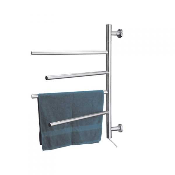 Электрический полотенцесушитель, подключение которого не составляет особого труда, состоит из нержавеющей конструкции, состоящей из нескольких пустотелых секций. Внутри располагается нагревательный элемент, с помощью которого создается необходимая температура. Ширина и высота конструкций самых разных размеров, что позволяет использовать этот прибор, практически, во всех ванных комнатах.