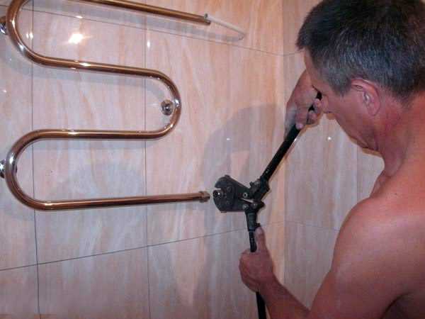 Когда полотенцесушитель максимально сильно прогревается лишь в районе ТЭНа, а дальше остается едва теплым или даже холодным, есть вероятность, что он просто забит и нуждается в качественной чистке. Осуществляют ее своими руками в домашних условиях.
