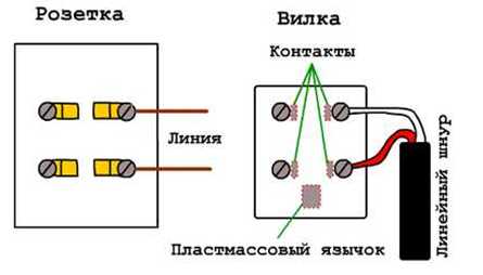 - на следующем этапе, присоединяем розетку к источнику питания. В приборе представленного вида, провода прикрепляются к контактам, расположенным посередине. При этом можно руководствоваться следующей схематической зарисовкой: