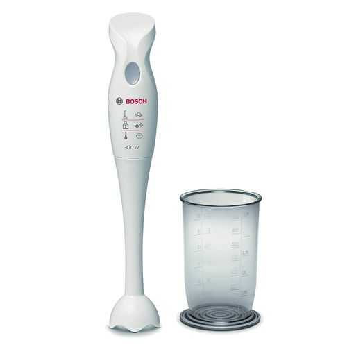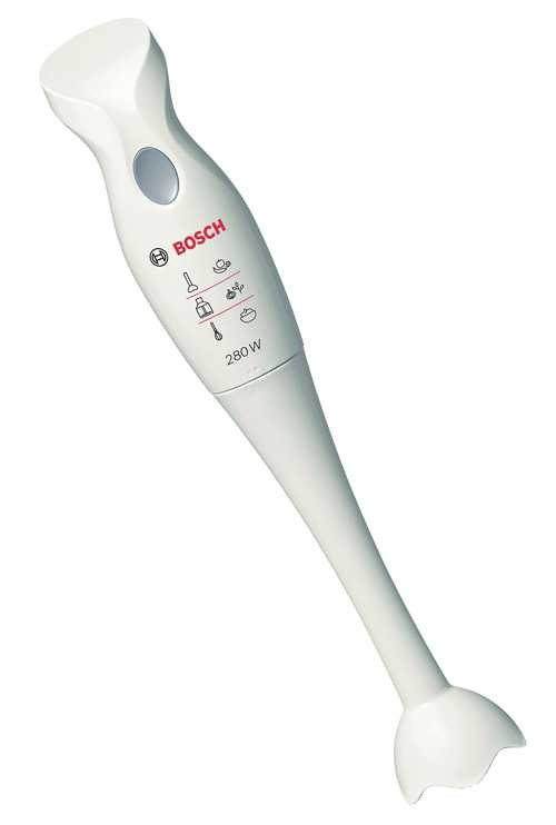 При выборе хорошего погружного блендера обратим внимание на данную многофункциональную, эргономичную модель. Со своими задачами этот прибор справляется на 5+. Легкое управление, небольшая мощность (300 Вт), импульсный режим и одна скорость позволяют этому устройству достаточно быстро и просто справиться с банальным заданием – измельчением и взбиванием пищевых продуктов. Погружная часть сделанная из высококачественного пластика, острые лезвия ножей из нержавеющей стали позволяют дольно эффективно измельчать различные продукты. В комплект к прибору идет маленький мерный стаканчик-измельчитель (500 мл). Невысокая стоимость, компактный размер, бесшумная работа, легкий уход за аксессуарами, простота и удобство использования этого прибора делает его доступным практически каждому покупателю. Отзывы о блендере хорошие. Минусы: блендер не используется для шинкования продуктов, для колки льда, нет терки, без крепления на стену. Производитель – Bosch, Германия.