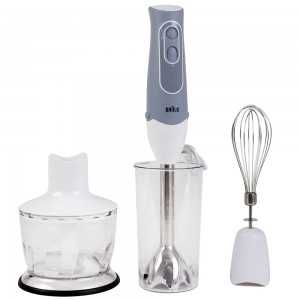 Современная, компактная модель этого блендера порадует хозяек своей простотой, бесшумной работой и легкостью использования. Мощность прибора – 400 Вт, плавная регулировка скорости работы, корпус и погружная часть из высококачественного пластика, приятная эргономичная ручка и дизайн. Этот блендер имеет турбо-кнопку и импульсный режим. Контроль скорости нарезки и измельчения продуктов дает возможность контролировать качество готовки. Минимум времени и усилий, и Ваша вкусная и полезная еда готова. Устройство очень легко можно мыть в посудомоечной машине. Эта модель прекрасно справляется со своими задачами и функциями и подходит для ежедневного применения. Минусы: в комплект не прилагается емкость для работы, нет терки и венчика для взбивания, нет измельчителя и шинковки. Отзывы про блендер хорошие в своем большинстве. Производитель – Gorenje, Словения.