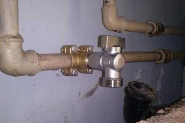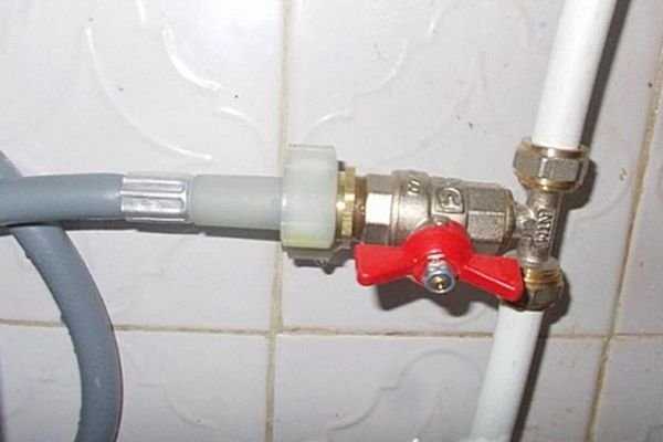 Бывает, что машину устанавливают далеко от мойки, но вблизи от трубы с холодной водой. Тогда тройник с отсечным краном врезают в магистраль, и вода поступает сразу в посудомойку