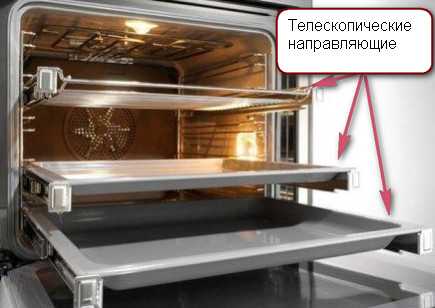 Телескопические направляющие - с их помощью мы можем спокойно, не опасаясь что наши руки обожгутся, проверять пищу, находящейся на противне. Функция бывает только у электрических духовок.