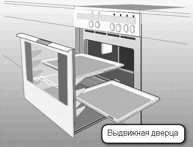 Выдвижная дверца - удобна для тех, кому лень наклоняться при проверке или укладывании блюда или продуктов. Также удобно и в том случае, что нам не приходиться лезть головой в духовку, так как решетки сами выдвигаются, а иначе горячий воздух в любой момент может попасть нам в лицо. Но у этой функции один недостаток, при выдвижении дверцы духового шкафа температура внутренней части духовки понижается. При понижении температуры приходится снова потратить время, чтоб она обратно нагрелась, и еще может сказаться на приготовлении определенного блюда. Не все выпечки или другие изделия могут вытерпеть смену температуру.
