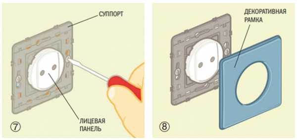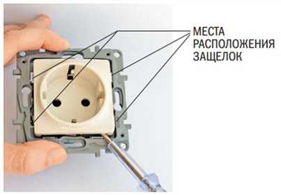 1. Декоративная рамка может крепиться защелками. Подденьте рамку отверткой, вставляя ее в пазы