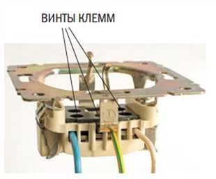 Для подсоединения электроустановочных изделий обычно применяют два типа клемм — винтовые и пружинные. Розеточные клеммы часто делают двойными. Это позволяет зажимать сразу два проводника — например, входящий и проводник, идущий к следующей розетке.