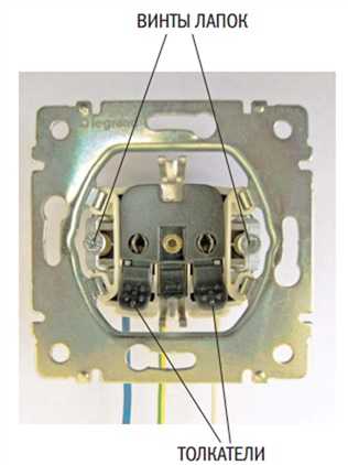 Розетка с пружинными клеммами со снятой лицевой панелью. Вид со стороны клемм