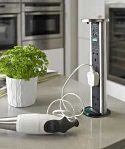 При помощи встраиваемых в поверхность устройств можно обеспечить электричеством любое место в доме. Для кухонных условий раздвижные розетки для кухни будут идеальными. Встречается несколько вариантов устройств, которые следует выбрать, отталкиваясь от эстетического вида в помещении. Не сильно красиво будет выглядеть присутствие наляпистого блока розеток на поверхности рабочего стола, к тому же это весьма небезопасно. Существующую альтернативу рассмотрим в нашей статье.