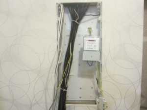 7.1.53. Перед счетчиком, который установлен на квартирном щитке, расположенном в передней квартиры в нишах, должен быть установлен рубильник или двухполюсный выключатель для безопасной замены счетчика.