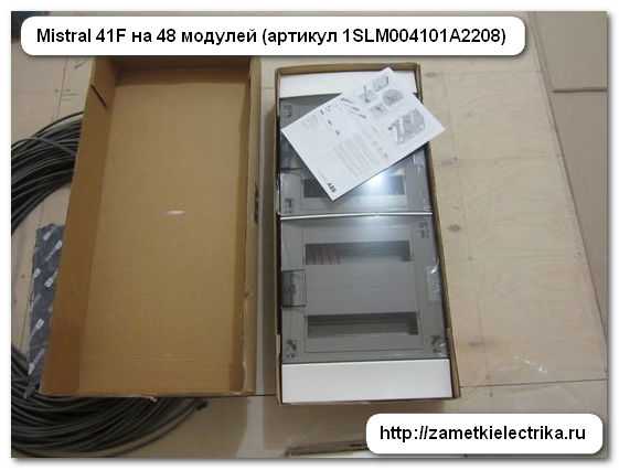 Первый щит на 48 модулей (артикул 1SLM004101A2208) предназначен для силовых электрических цепей. В дальнейшем в нем будут установлены: вводной коммутационный аппарат (скорее всего выключатель нагрузки, т.к. вводной автомат установлен в подъездном щите), счетчик электрической энергии, аппараты защиты отходящих линий (автоматы, УЗО и т.п.), реле, контакторы и прочие коммутационные аппараты и устройства.