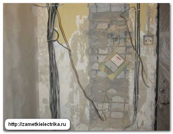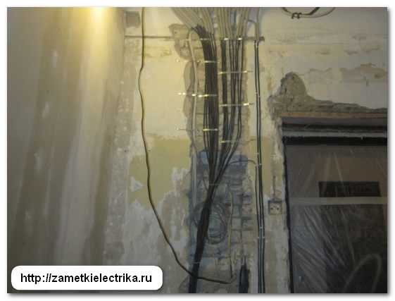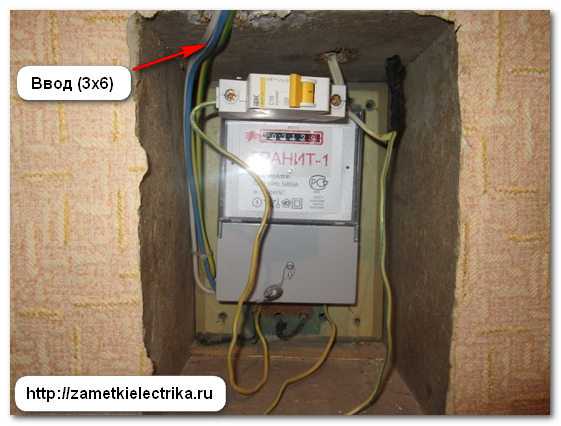 Ввод в квартиру выполнен уже новыми проводами ПВ-1 (3х6), т.к. этот жилой дом несколько лет назад попал под программу капитального ремонта и в нем проводился капитальный ремонт электропроводки, а именно: замена вводного распределительного устройства ВРУ-0,4 (кВ), монтаж заземляющего устройства (ЗУ), замена магистральных линий, этажных щитов и вводных кабелей в квартиры, а также замена подъездного и уличного (козырькового) освещения.