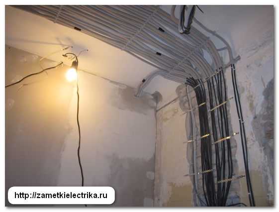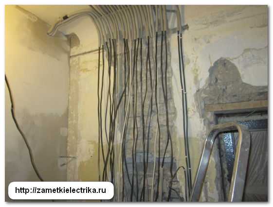 Ввод кабелей в распределительный щит осуществляется сверху, поэтому от щита до потолка необходимо сделать неглубокую штробу для укладки пучка всех кабелей.