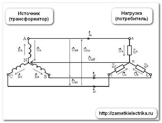 Беда в том, что все электрические коммуникации (т. е. линии электропередачи) являются трёхфазными. Рассмотрим схему «звезда», в которой появляется понятие «нулевой провод».