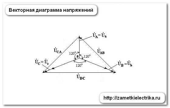 Естественно, что фазные напряжения сдвинуты относительно друг друга на 120 электрических градуса.