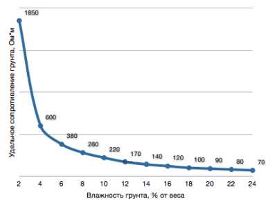 Кривая зависимости удельного сопротивления грунта от влажности