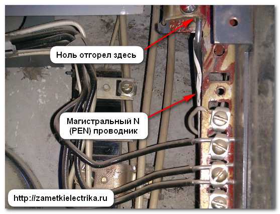 Отгорание происходит в слабых местах. например, в плохо обжатом контакте. Такой перекос может из-за отгорания нуля создать катастрофические последствия: скачек напряжения до 380 Вольт. Большая часть дорогостоящей аппаратуры может сгореть. Но вот спросить будет не с кого.