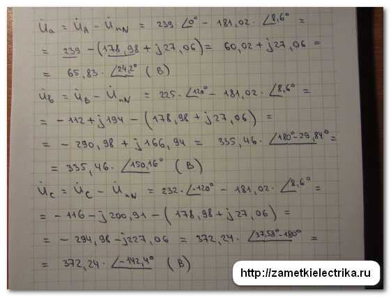 Определим фазные напряжения на нагрузке с учетом смещения нейтрали.