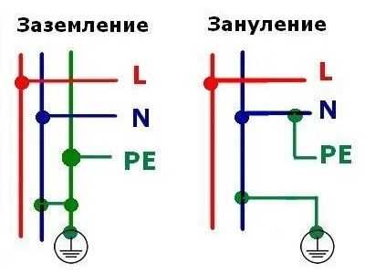Схематическое отображение заземления и зануления