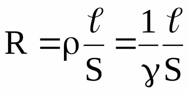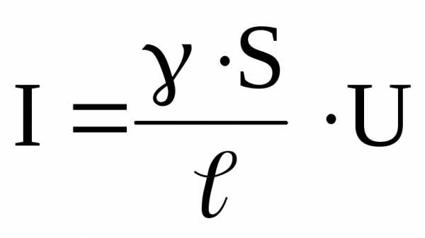 где γ = 1 / ρ – удельная электропроводность материала, ρ – удельное сопротивление, S – площадь поперечного сечения проводника,