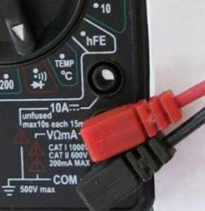 Подключение щупов в мультиметр