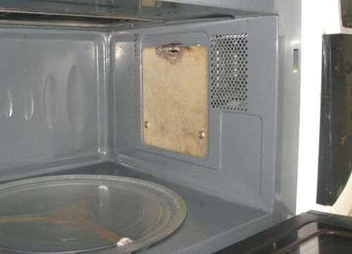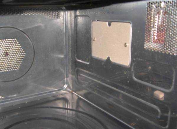 Пластина находится сбоку и закрывает излучатель. При попадании на поверхность грязи, разбрызгиваемого жира, она перегорает в отдельных местах и начинает скрипеть, искрить. Если вовремя не устранить неисправность, искра попадет на магнетрон и он сгорит. Цена этого узла составляет до 90% стоимости СВЧ печи.